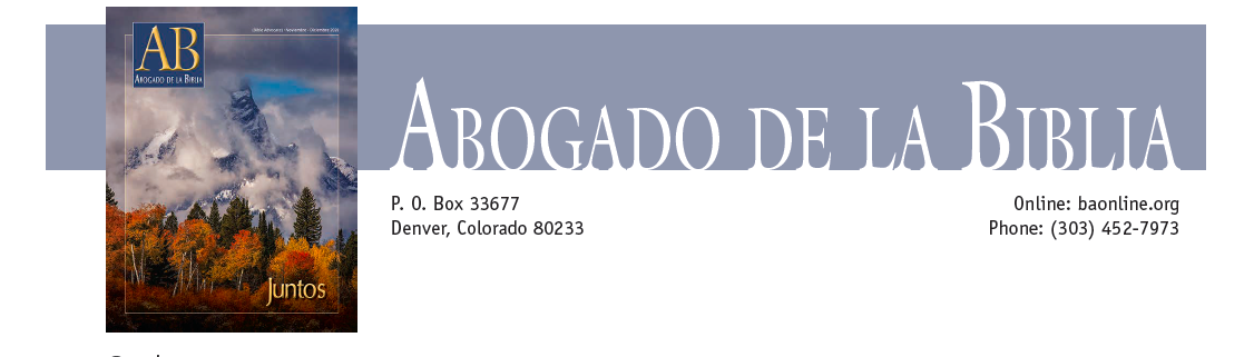 Al igual que muchas familias e iglesias en este momento, la Impresora del Abogado de la Biblia (Bible Advocate Press) está tratando de superar los desafíos económicos que este 2020 ha traído. Seguimos adelante en la paz de Cristo, ministrando a todo el mundo con las buenas nuevas de Su venida. Pero confiamos en su generosidad para hacerlo.